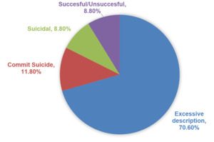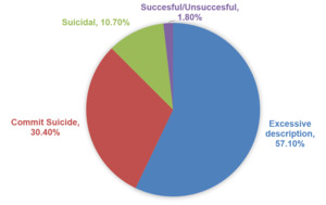 20% of discharges did not use appropriate suicide-related terminology (n = 34). There was no statistically significant difference in the amount of discharges containing errors between adults and minors (𝜒 = 0.164, p = 0.686). The most common issue was excessive description of the attempt (70%). The distribution of errors can be seen in Figure 2.